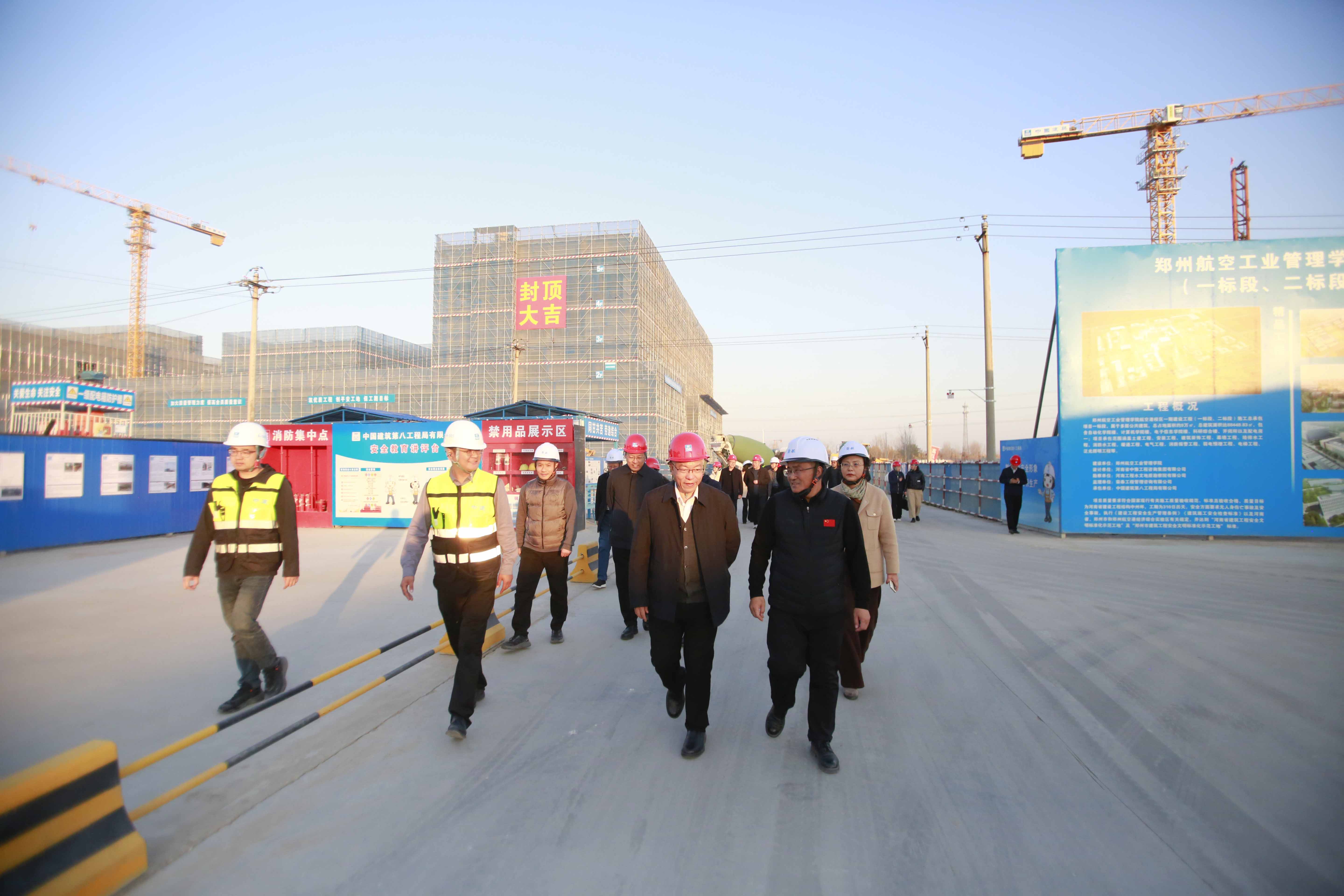 11月20日,校长邓中亮带队赴航空港校区施工现场调研指导,重点检查施工工艺、安全防护及冬季施工保障工作落实情况。