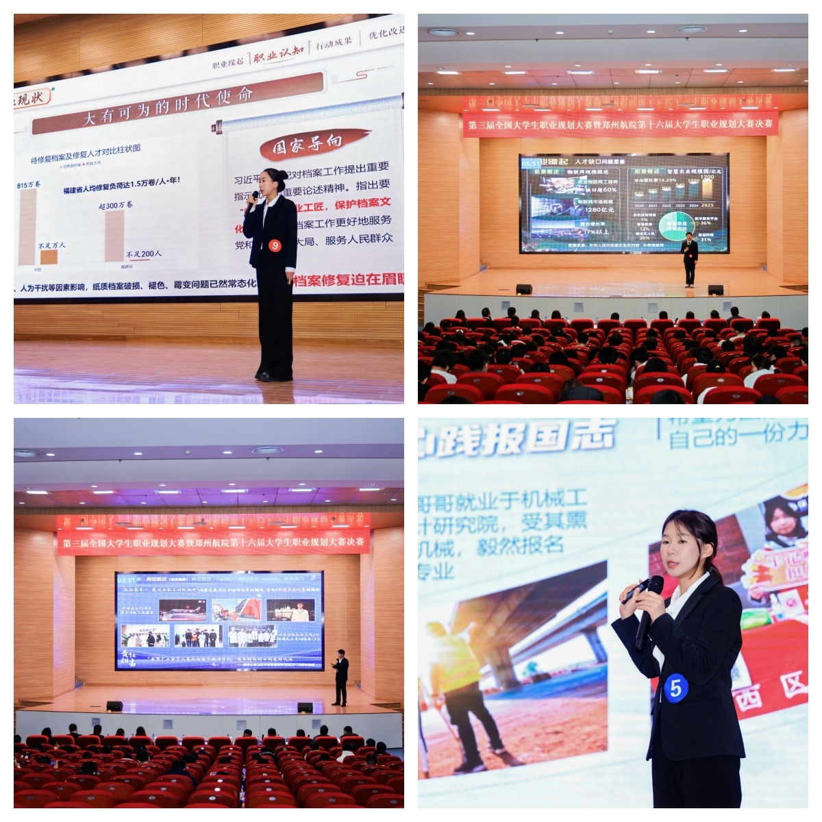 大赛以“筑梦青春志在四方,规划启航职引未来”为主题,设置成长赛道和就业赛道。经学院预赛、学校复赛,最终15名选手晋级总决赛。决赛现场,参赛选手通过职业规划展示、现场答辩等环节,结合职业目标、专业所长与行业趋势,勾勒职业发展蓝图,讲述成长奋斗故事,展现出将个人理想融入国家经济社会发展需要的青春追求和挺膺担当。经过四个多小时的激烈角逐,最终评选出金奖4名、银奖6名、铜奖5名和优秀组织奖5个。