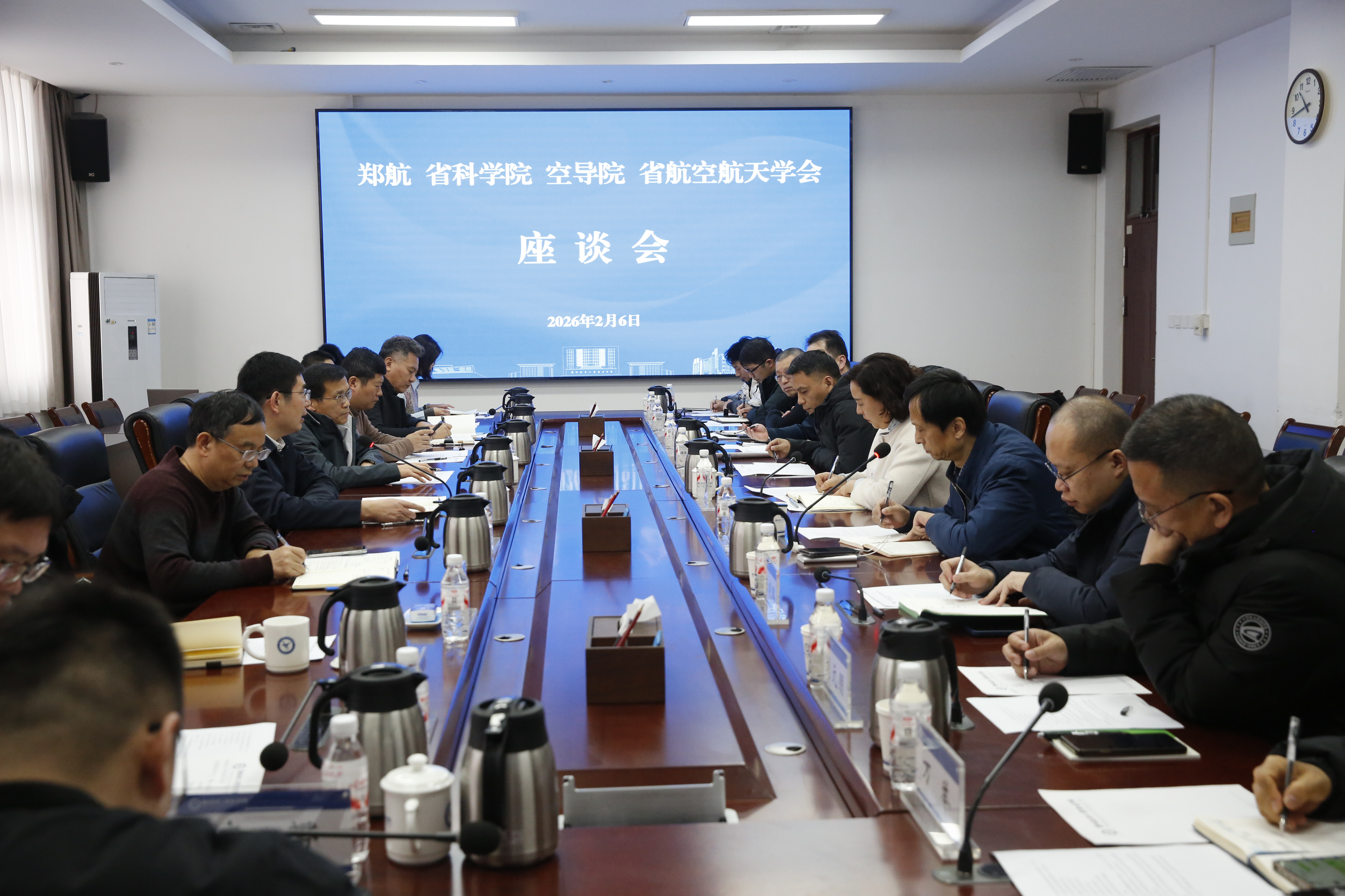 2月6日,河南省科学院航空港区分院、河南省科学院空天信息所、中国空空导弹研究院、河南省航空航天学会等单位领导与专家来校洽谈合作事宜。副校长陈静出席并主持座谈会。