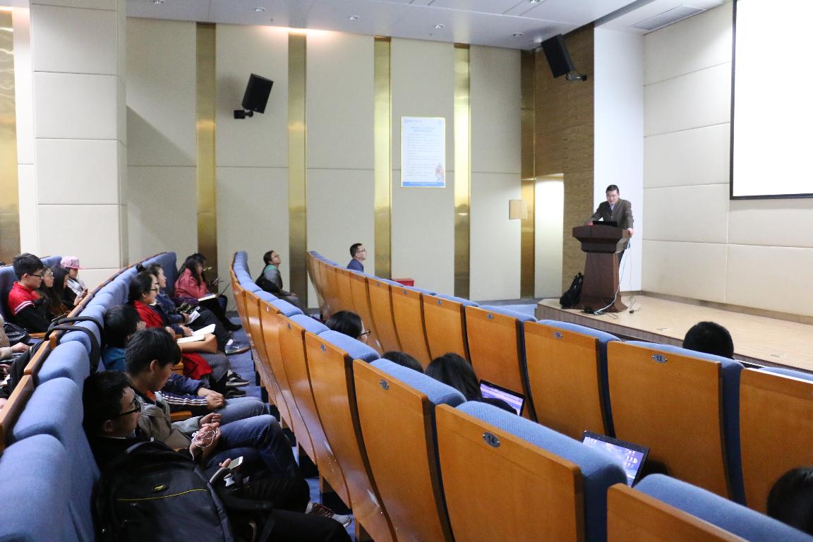 在詹博士报告的互动环节,在场老师和学生反响热烈,分别提出了自己在使用CSMAR数据库过程中、在平时策略分析、毕业论文写作中遇到的问题,詹博士逐一详细解答。尤其是在场的经贸学院谢老师等几位专业课老师针对各自教学研究领域向詹博士提出了实务性很强的专业问题,如国家经济政策方针调整,私募基金领域,股指期货套利分析等问题,现场互动强烈,几位老师深深感受到詹博士专业的水平和职业素养,并表示要加强互动交流。