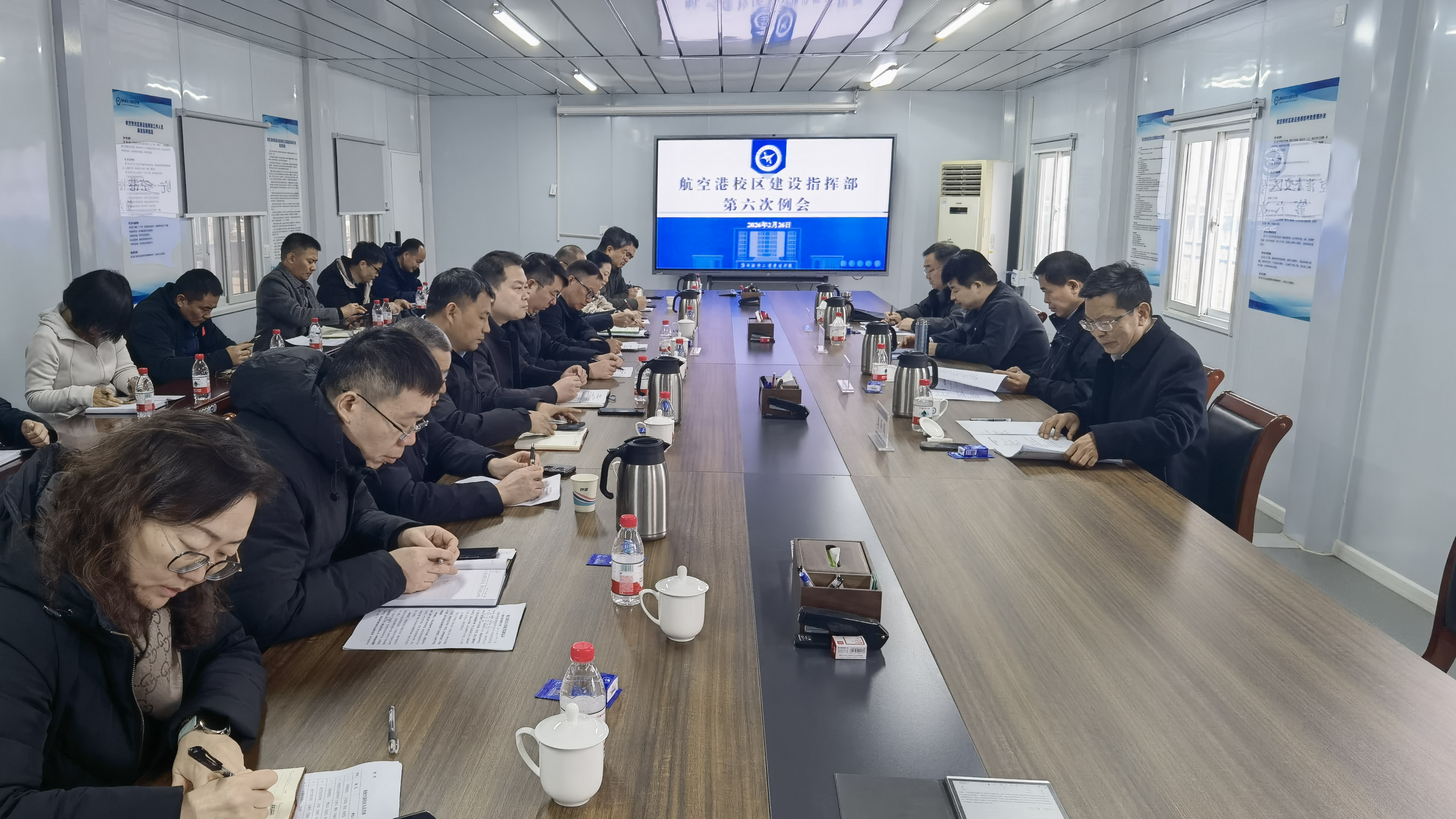2月26日,航空港校区建设指挥部召开工作推进会,专题听取春节后复工情况及下一步工作计划汇报,统筹部署各项建设任务,全力推动航空港校区建设各项工作落地见效。校党委副书记、工会主席李捷,校党委副书记李广锋,校纪委书记、监察专员王继锋出席会议。会议由副校长李泽锋主持。